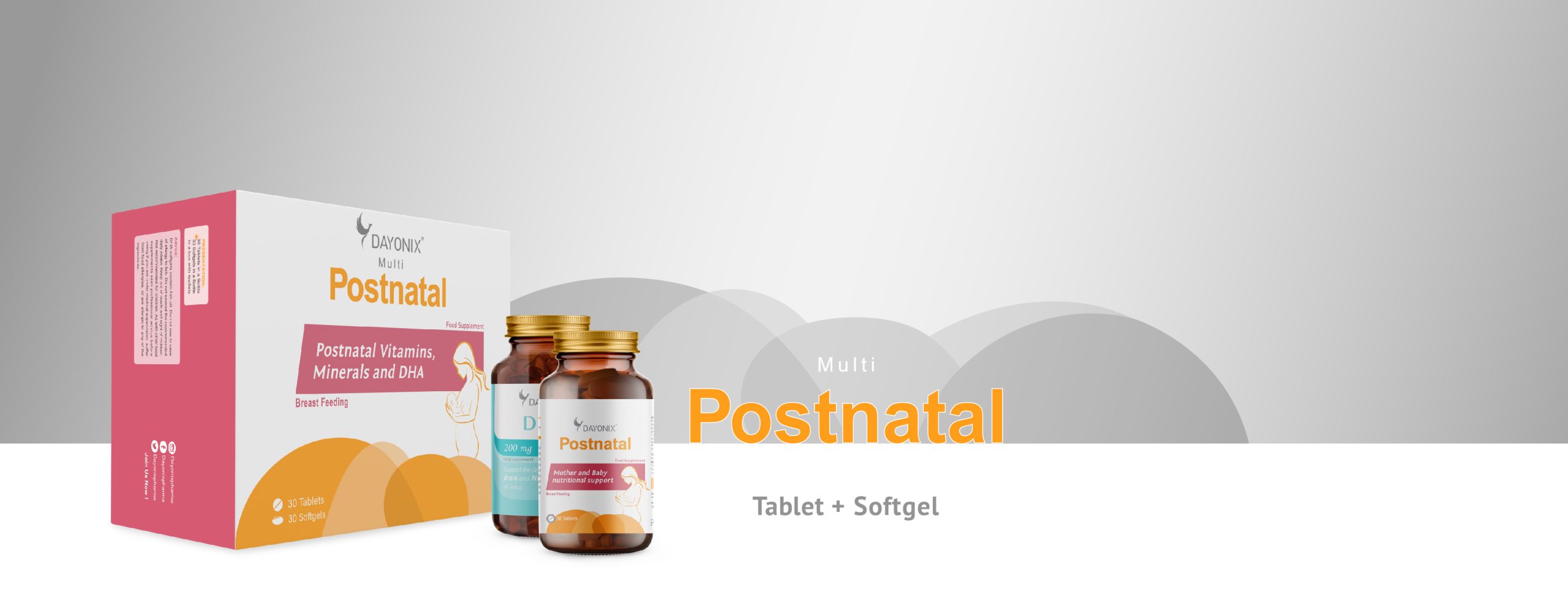 Dayonix® Multipostnatal is the perfect choice for mothers looking to restore their nutrients and maintain optimal health for themselves and their babies. This product features a dual-bottle system: one with tablets packed with essential vitamins and minerals that boost immunity, energy, bone health, and hormonal balance, and another with DHA softgels to support the baby’s brain development and maternal cognitive health. Together, these ingredients offer a complete solution for postpartum nutrition.
